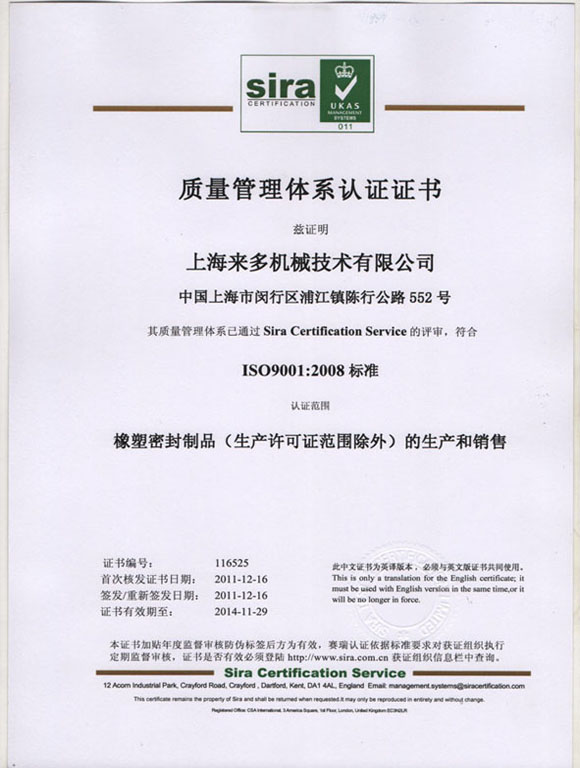 质量管理体系认证证书